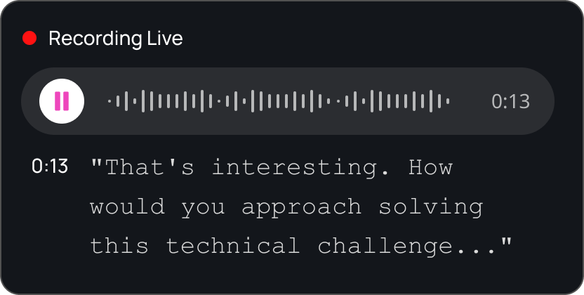 Advanced speech-to-text technology captures every word with 99.9% accuracy, creating a complete record of the interview.